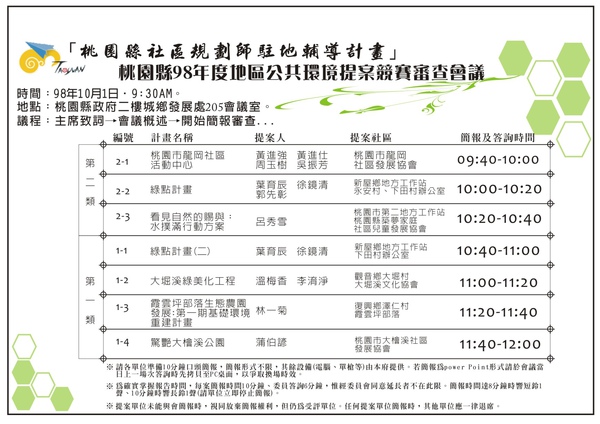 地區環境提案部分需要您們來簡報給審查委員聽!!